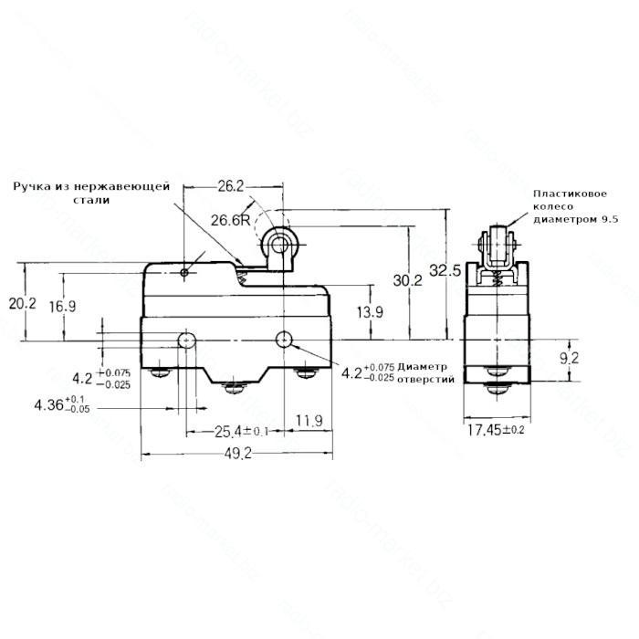 51х18x32мм, AC380В DC250В, 10А, 3 pin, SPDT, важіль L=42мм з роликом